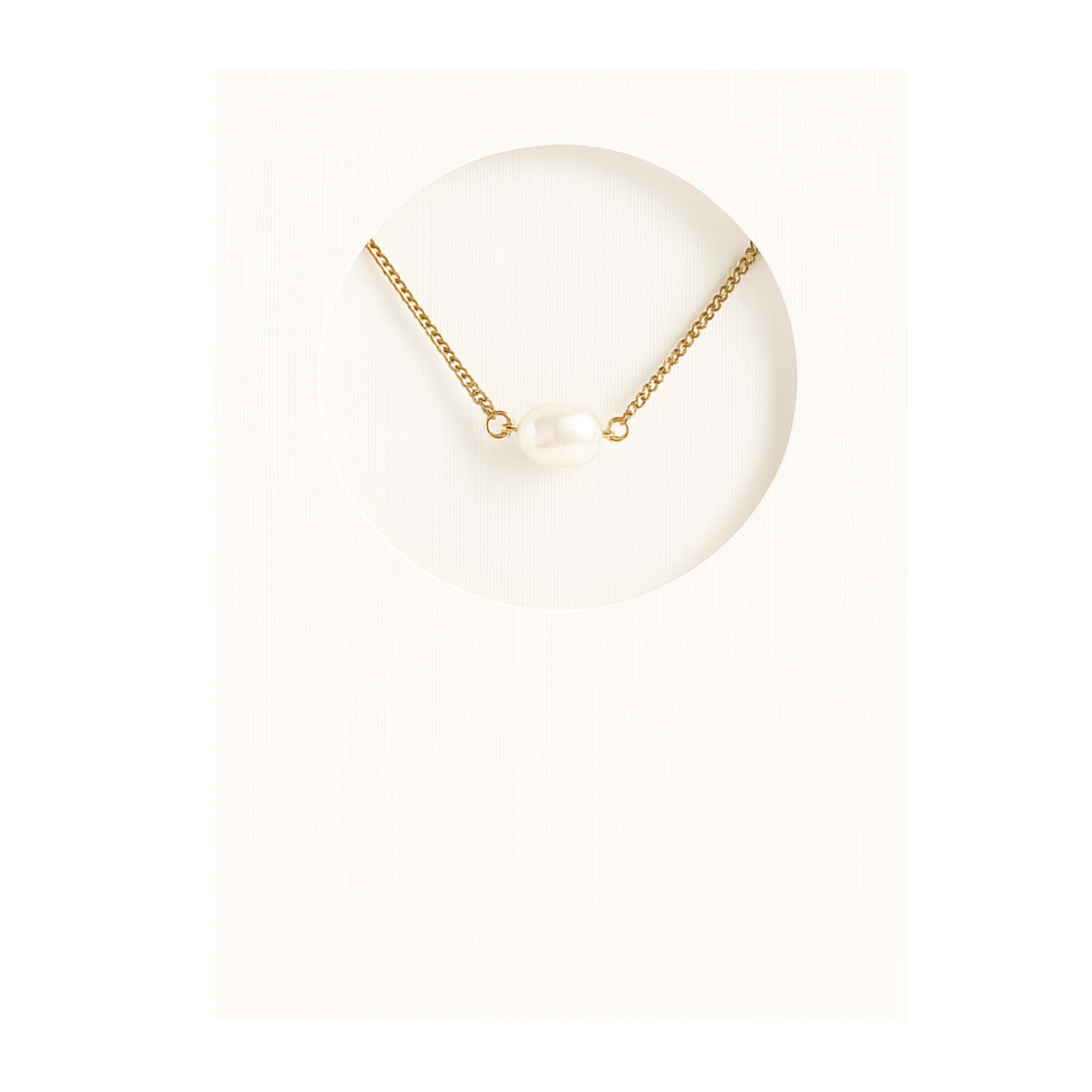 A necklace that’s always in style, this freshwater pearl on an 18K gold plated chain is the perfect balance of classic and modern. The natural pearl adds a soft, elegant glow, while the golden shine makes it effortlessly chic.